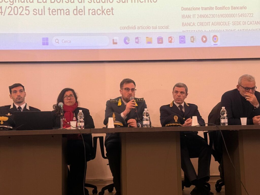 L’appuntamento con il Liceo Superiore Statale “G. Verga” di Adrano, è stato possibile grazie al dirigente scolastico Prof.ssa Lorena Loredana sensibile al tema e al contrasto al racket.