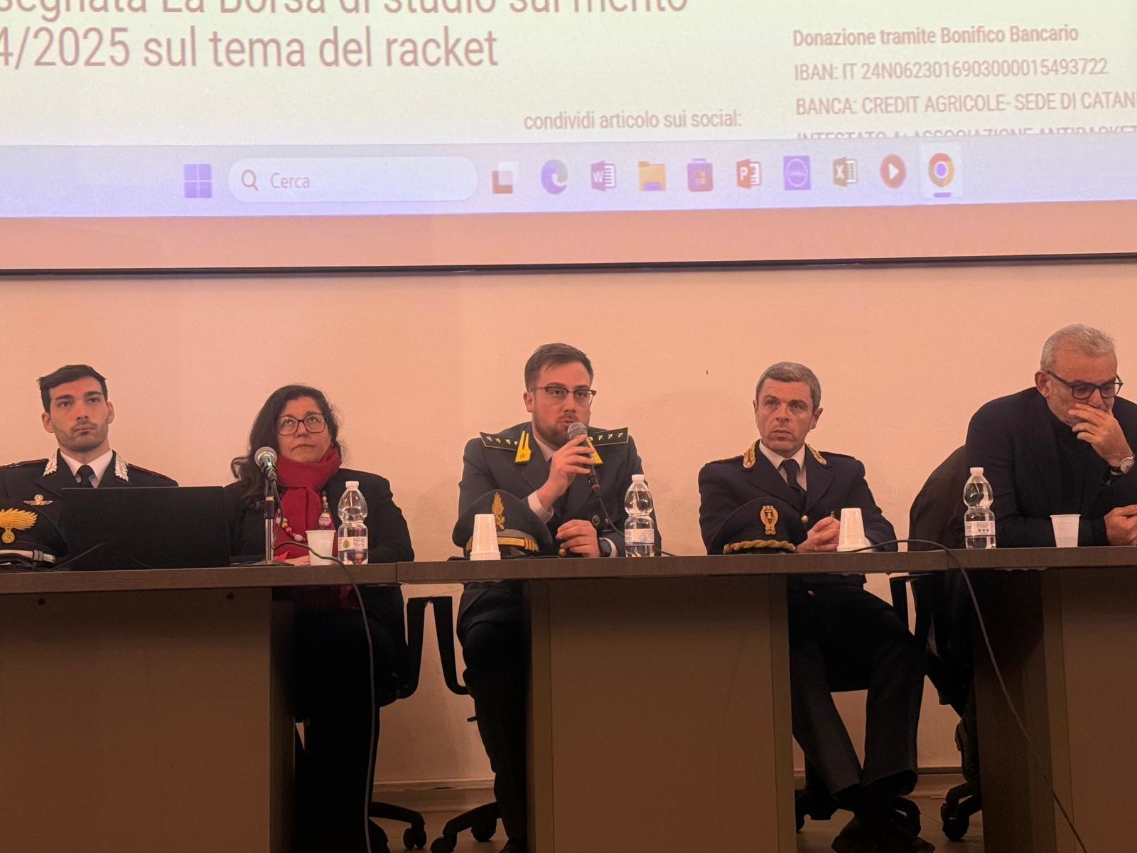 Per la Magistratura era presente il Procuratore della Repubblica di Catania il Dott. Francesco Curcio, per il Consiglio dell’Ordine degli Avvocati di Catania la dott.ssa Alessia Falcone, per la G.d.F. il capitano di Paternò il Capitano Dott. Sergio Bertolino, il Tenente dei Carabinieri della Compagnia di Paternò Dott. Daniele Trincone, il Dirigente della D.I.A. di Catania Dott. Felice Puzzo, per la Questura di Catania il Commissario Dott. Vincenzo Sangiorgio, il Presidente di Libera Impresa Rosario Cunsolo, la Vice Presidente di Libera Impresa la Signora Maddalena Caponnetto, vittima di Mafia, da remoto l’Onorevole Josè Marano Componente della Commissione regionale Antimafia e il saluto del Direttore del Giornale “LA SICILIA”.